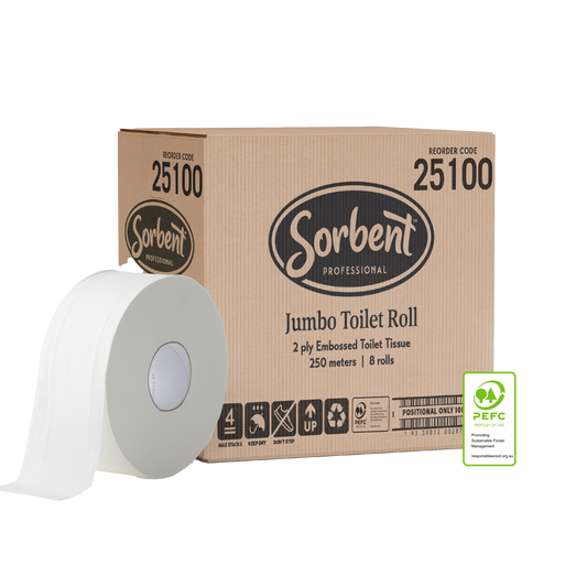 Sorbent Jumbo Roll Toilet Tissue 2ply 250m