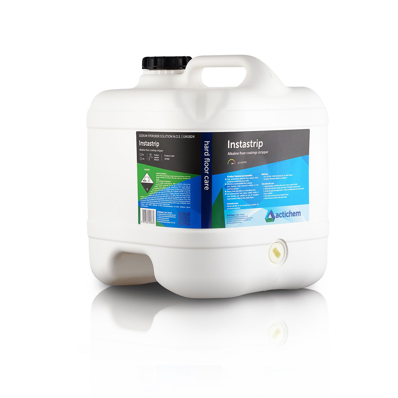 Instastrip is a heavy duty floor stripper designed to remove polish build-up, wax, sealers and UHS burnished finishes. Instastrip has been designed to be used in conjunction with powered scrubbing machinery to quickly and effectively remove coatings and finishes from a wide variety of floor surfaces. Instastrip is even exceptionally effective at high dilution, making it the economical choice for routine coatings removal.