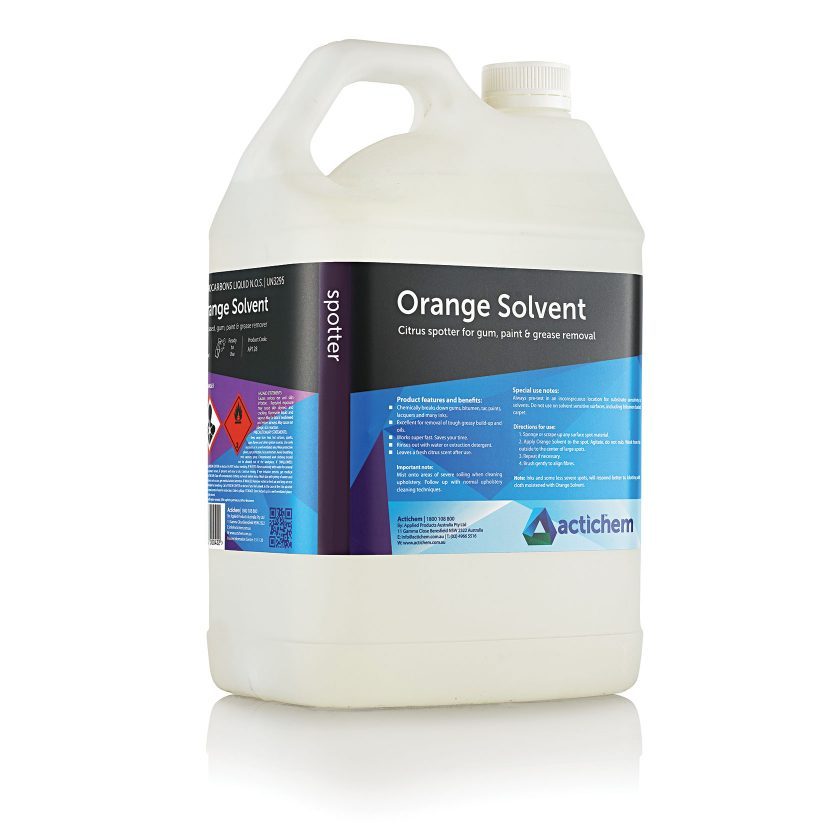 Orange Solvent is a super strength blend of DiLimonine terpene solvents and emulsifiers for removing tough gum, oily soils, grease and paints. Orange Solvent has been specially designed to enable effective rinsing with clean water or extraction detergent solution.