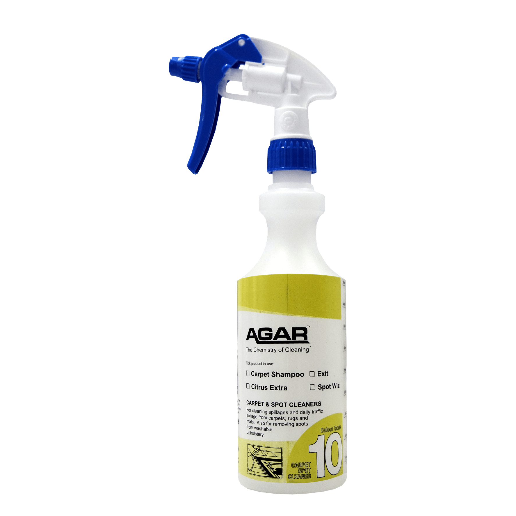 EXIT should be added to the tank of carpet Hot Water Extraction (HWE) machines. EXIT is a perfumed liquid detergent with fast-reacting cleaning agents for single-pass HWE carpet cleaning. The detergent ingredients in EXIT are specially selected for their rapid action and low-foaming characteristics. Solutions of EXIT are free rinsing so that the carpet fibres are left clean and fresh with no oily residues to attract dirt and lead to early resoiling.