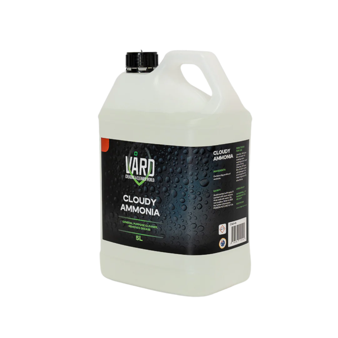A combination of ammonia and surfactant, and has a milky colour compared to undiluted, clear ammonia. Cloudy ammonia is used in household cleaning and is slightly milder than clear ammonia, but still effective in an ultrasonic cleaner. Effective as a drain cleaner when mixed with 10 parts hot water to 1 part cloudy ammonia.