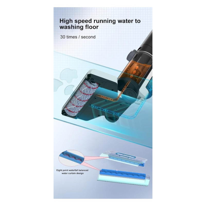 - Constant simultaneous clears up and squeezes used water to ensure a cleaning brush roller all the time.