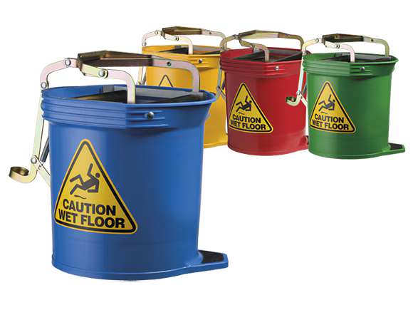 The Oates wide mouth wringer bucket is constructed with highly durable plastic, which ensures it is lightweight and hygienic for professional cleaning. The wide opening is ideal to accommodate bigger mop heads The non-slip foot pedal and castors allow it to be manoeuvred with ease. The wringer bucket is ergonomic with an easy action wringing system and displays a wet floor warning sign on its side for safety. It is available in 4 colours.