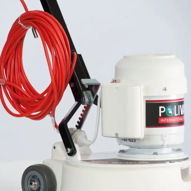 It is equipped with an offset motor that provides exceptional balance and reduced starting torque to facilitate smooth operation. Its ergonomic height adjustable handle provides maximum operator comfort, and thanks to the smooth running wheels, it is easy to transport between cleaning tasks.