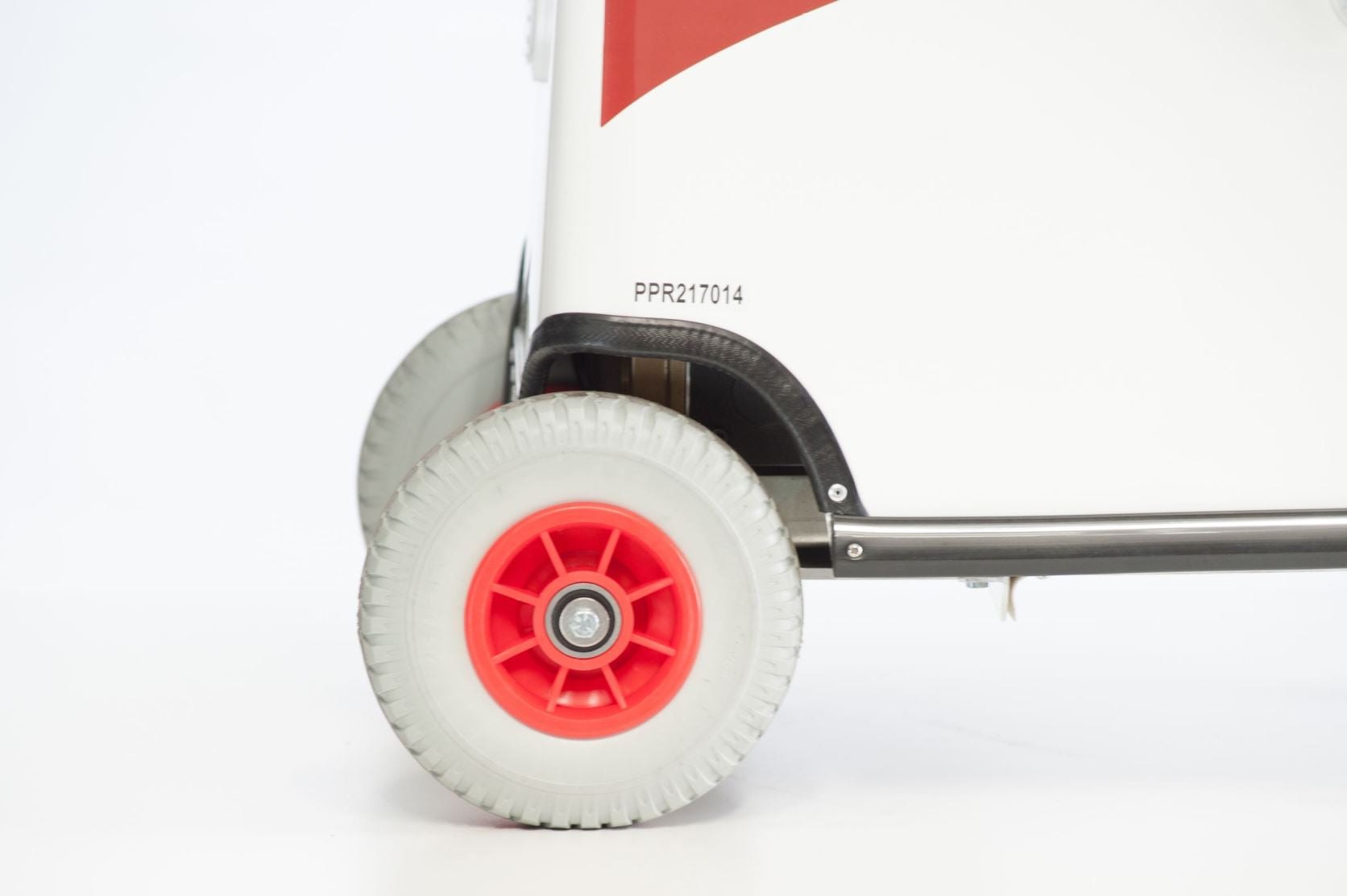 WHEELS - Front: 2 non-marking lockable castors Rear: 2 pneumatic tyres (foam filled)